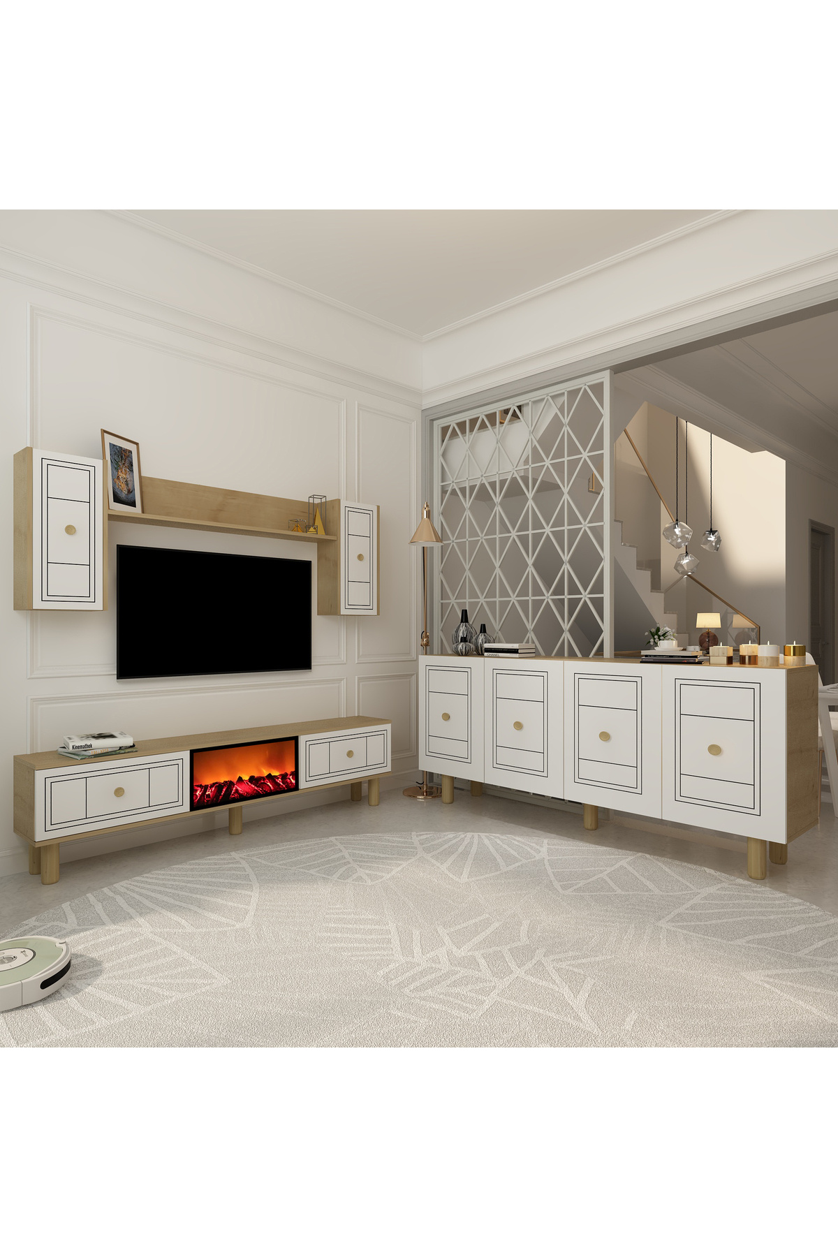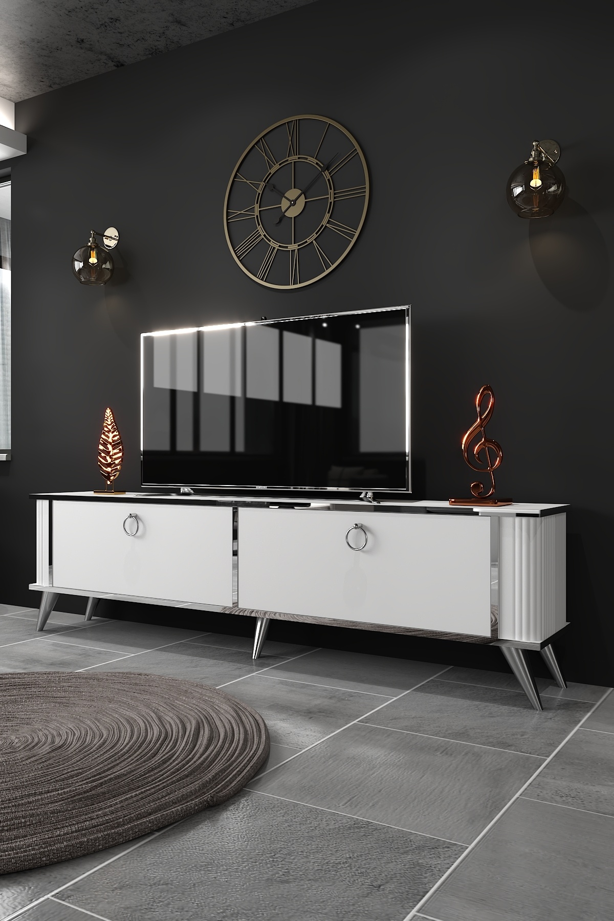 Karya 180 Cm Tv Ünitesi Ve Konsol 2'li Salon Takımı Antrasit-altın Karya 180 Cm Tv Ünitesi Ve Konsol 2'li Salon Takımı Antrasit-altın STKM9009 تک سایز