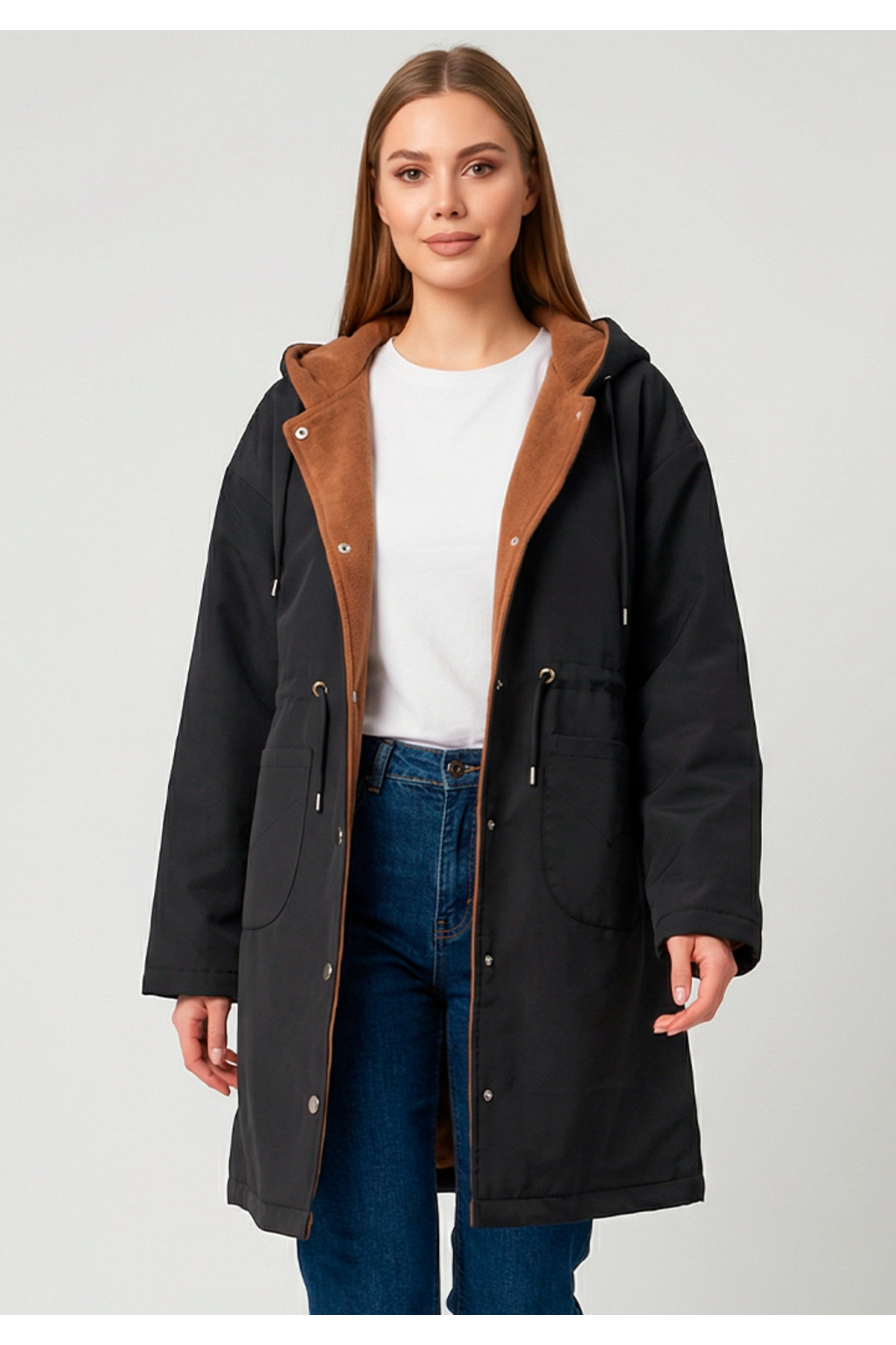 Kadın Koyu Haki Kapüşonlu Kürk Astarlı Kalın Kaban 5565-1 Kadın Koyu Haki Kapüşonlu Kürk Astarlı Kalın Kaban 5565-1 2XL