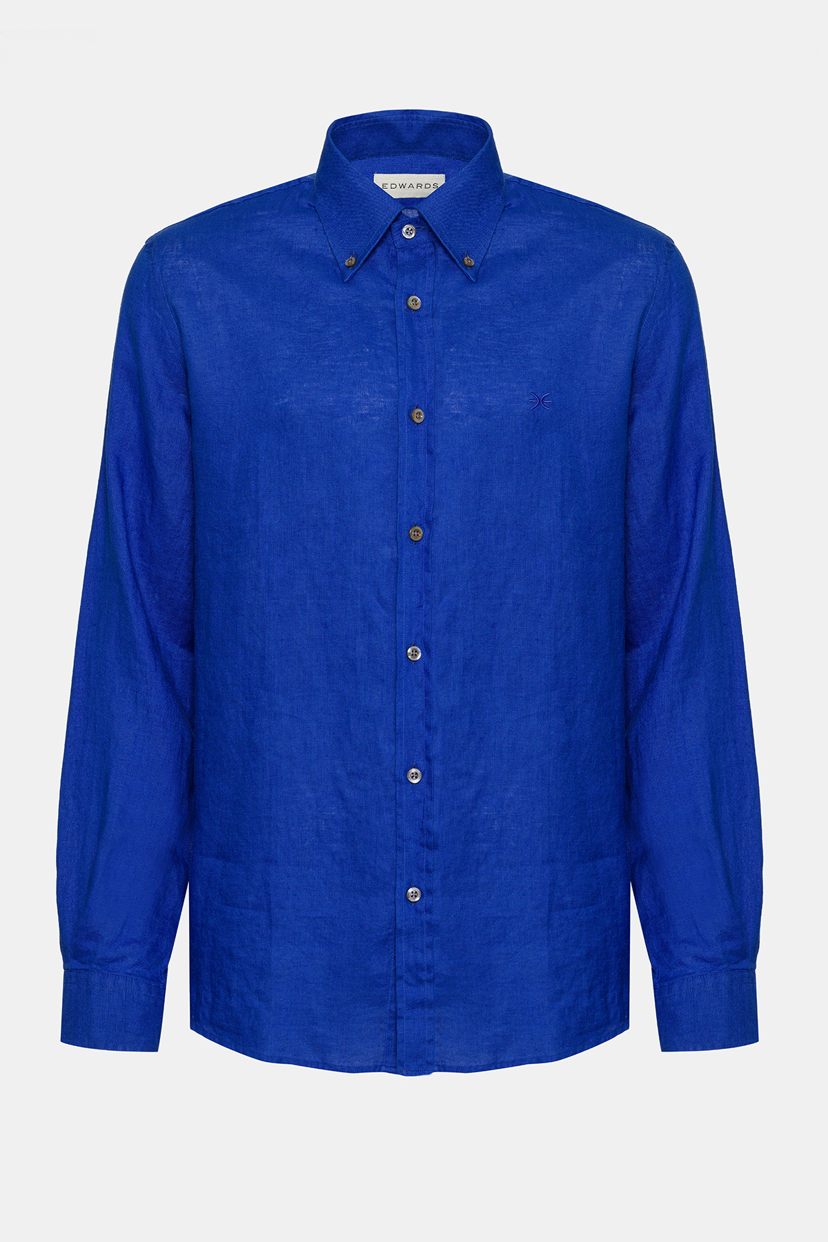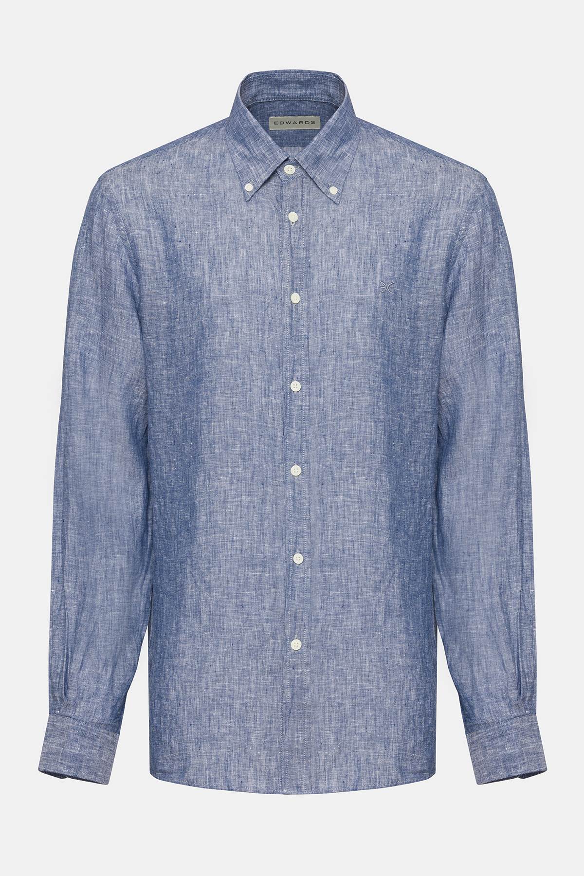 Erkek Lacivert Cooper Fit Düğmeli Yaka Keten Gömlek Erkek Lacivert Cooper Fit Düğmeli Yaka Keten Gömlek MSP23M002SHRN019 2XL