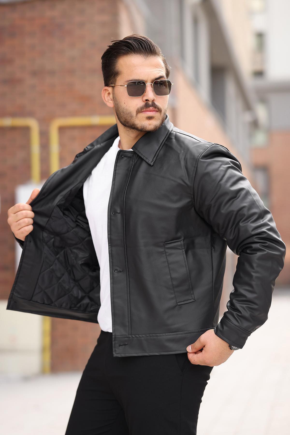 Erkek Kapüşonlu Siyah Deri Mont Erkek Kapüşonlu Siyah Deri Mont HCMNT-123 2XL