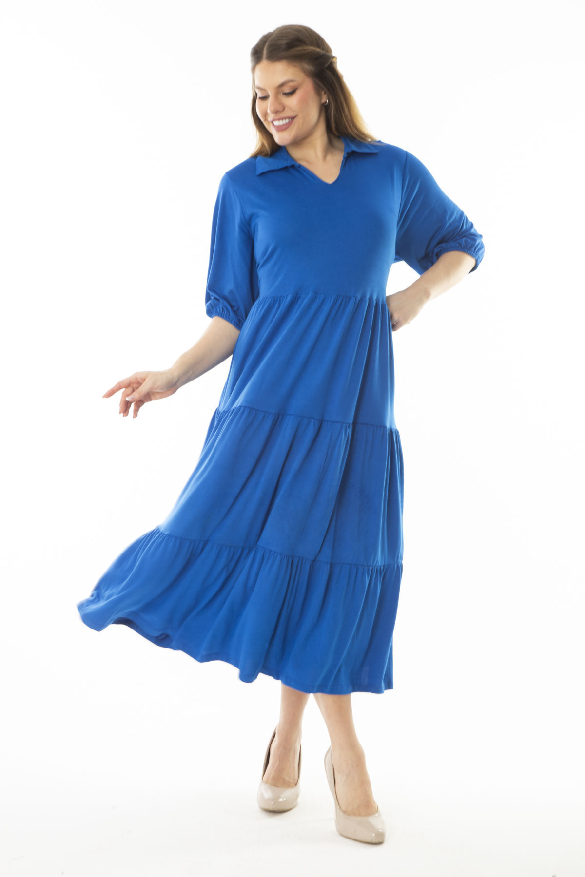 Kadın Büyük Beden Saks Yakalı Kol Ağzı Lastik Detaylı Katlı Uzun Elbise 65N37071 Kadın Büyük Beden Saks Yakalı Kol Ağzı Lastik Detaylı Katlı Uzun Elbise 65N37071 62-64