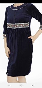 Lacivert Cepli Nakış Detaylı Pamuklu Kadife Elbise Lacivert Cepli Nakış Detaylı Pamuklu Kadife Elbise 20049 2XL