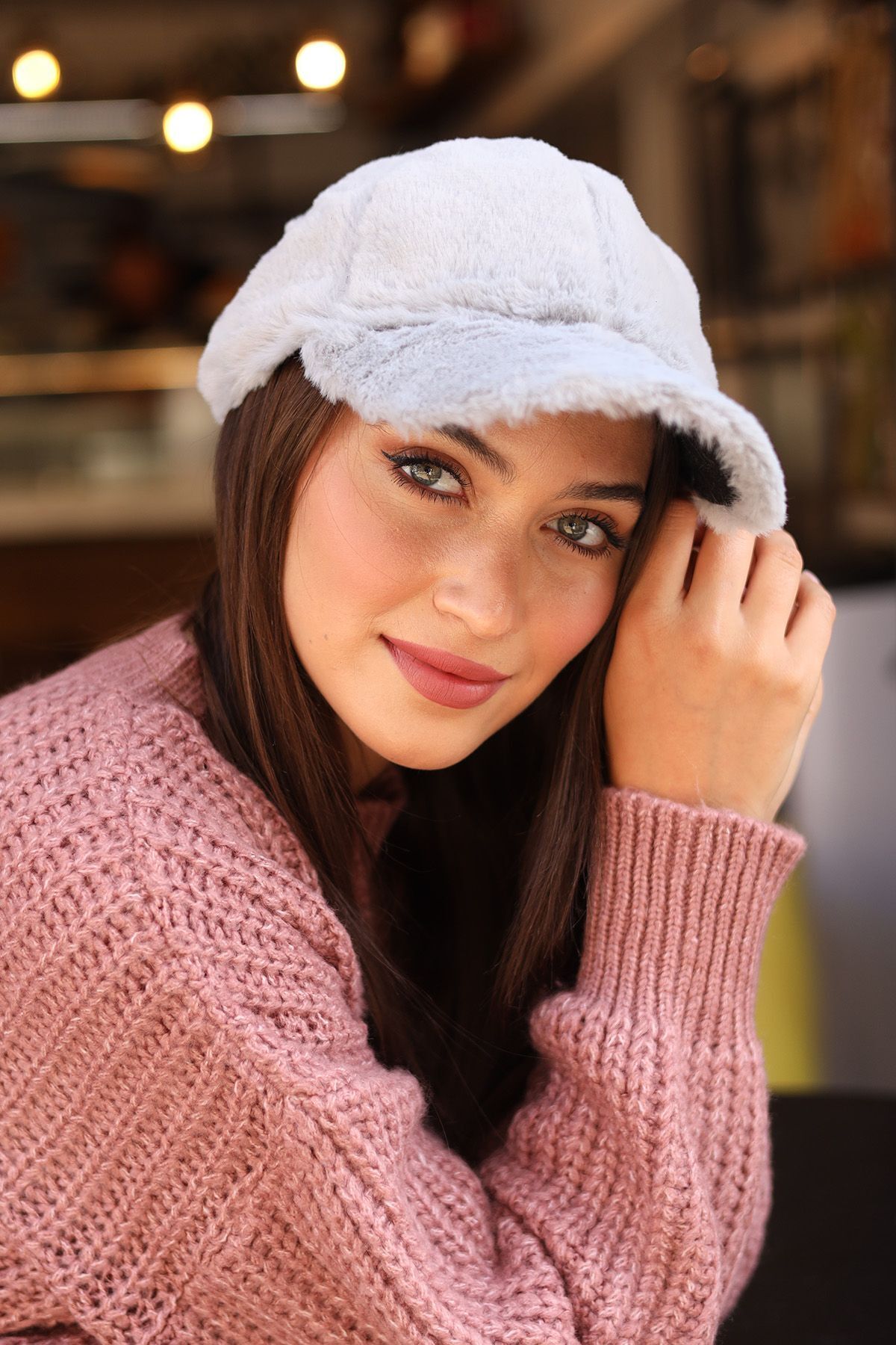 Kadın Peluş Kep Şapka RKŞ-06 Pudra Kadın Peluş Kep Şapka RKŞ-06 Pudra Standart