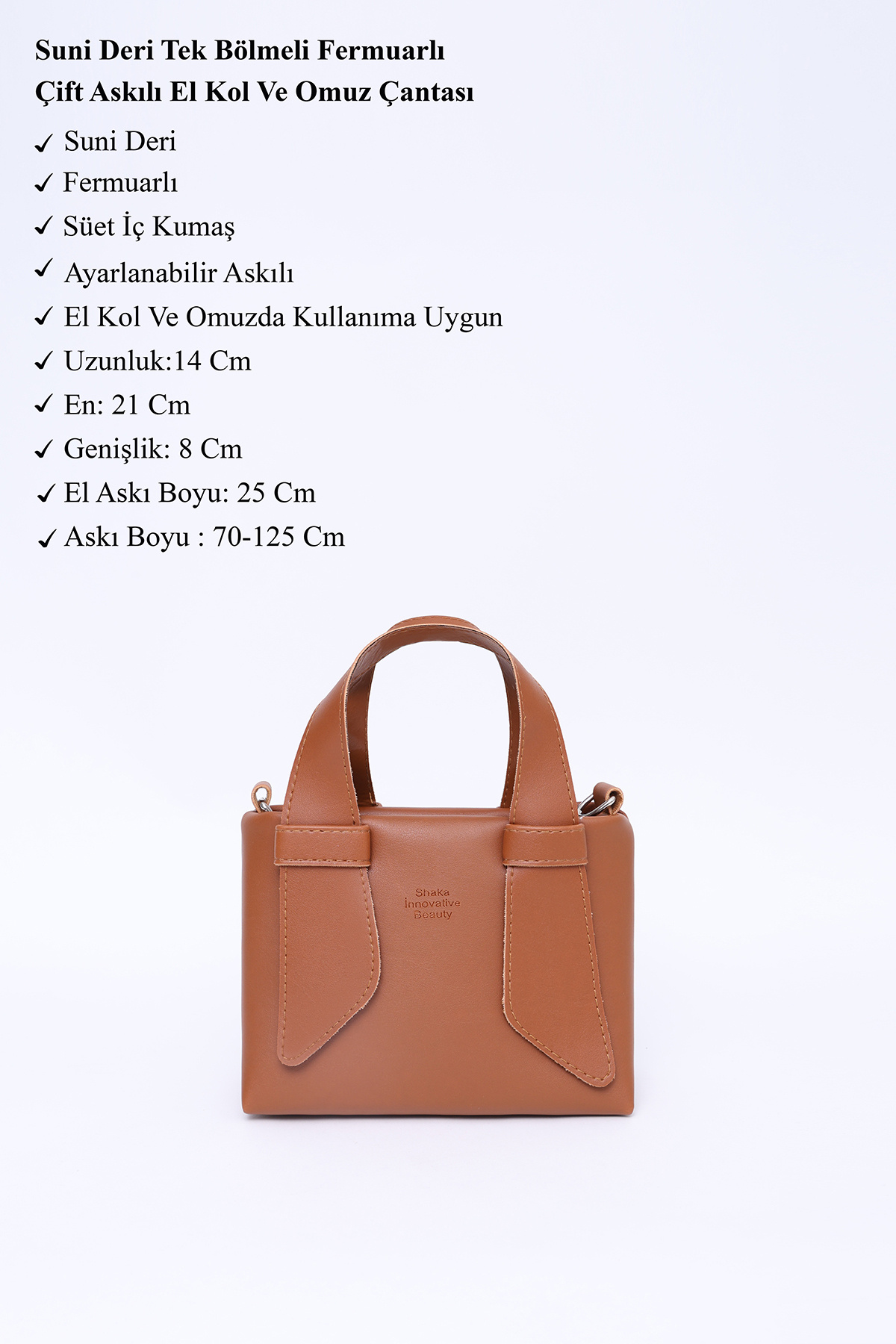 Taba SHK60 Suni Deri, Tek Bölmeli, Fermuarlı, Ayarlanabilir Askılı, El, Kol Ve Omuz Çantası Taba SHK60 Suni Deri, Tek Bölmeli, Fermuarlı, Ayarlanabilir Askılı, El, Kol Ve Omuz Çantası S225-00135 تک سایز