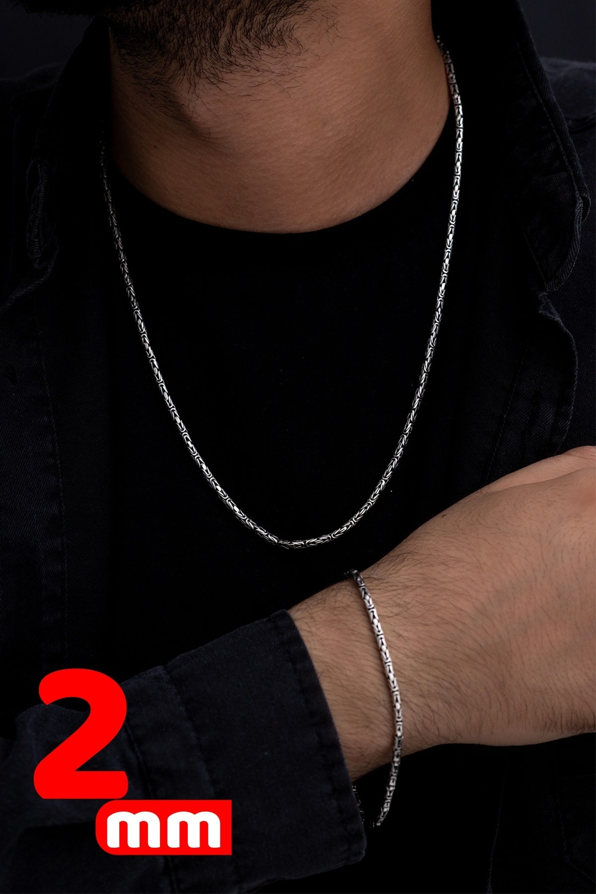 Erkek Gümüş Bileklik Kolye Set - 2mm 925 Ayar Gümüş Yuvarlak Kral Model Set Erkek Gümüş Bileklik Kolye Set - 2mm 925 Ayar Gümüş Yuvarlak Kral Model Set Set-YuvarlakKral 70 cm