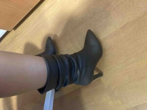 R404020309 Siyah İnce Topuklu Büzgülü Kadın Bot R404020309 Siyah İnce Topuklu Büzgülü Kadın Bot 40