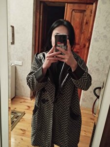 Deri Detaylı Kapüşonlu Jakarlı Zigzak Desen Uzun Kol Düğmeli Cepli Yırtmaçlı Basen Altı Rahat Hırka Deri Detaylı Kapüşonlu Jakarlı Zigzak Desen Uzun Kol Düğmeli Cepli Yırtmaçlı Basen Altı Rahat Hırka KHE-00149 54-56