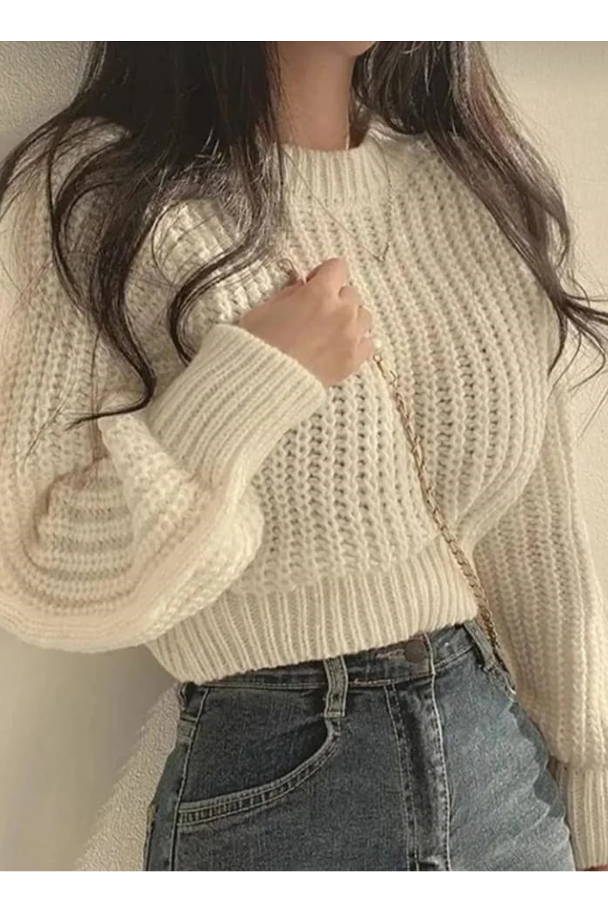 Kadın İspanyol Kol Crop Çizgili triko hırka Kadın İspanyol Kol Crop Çizgili triko hırka tz8005 L