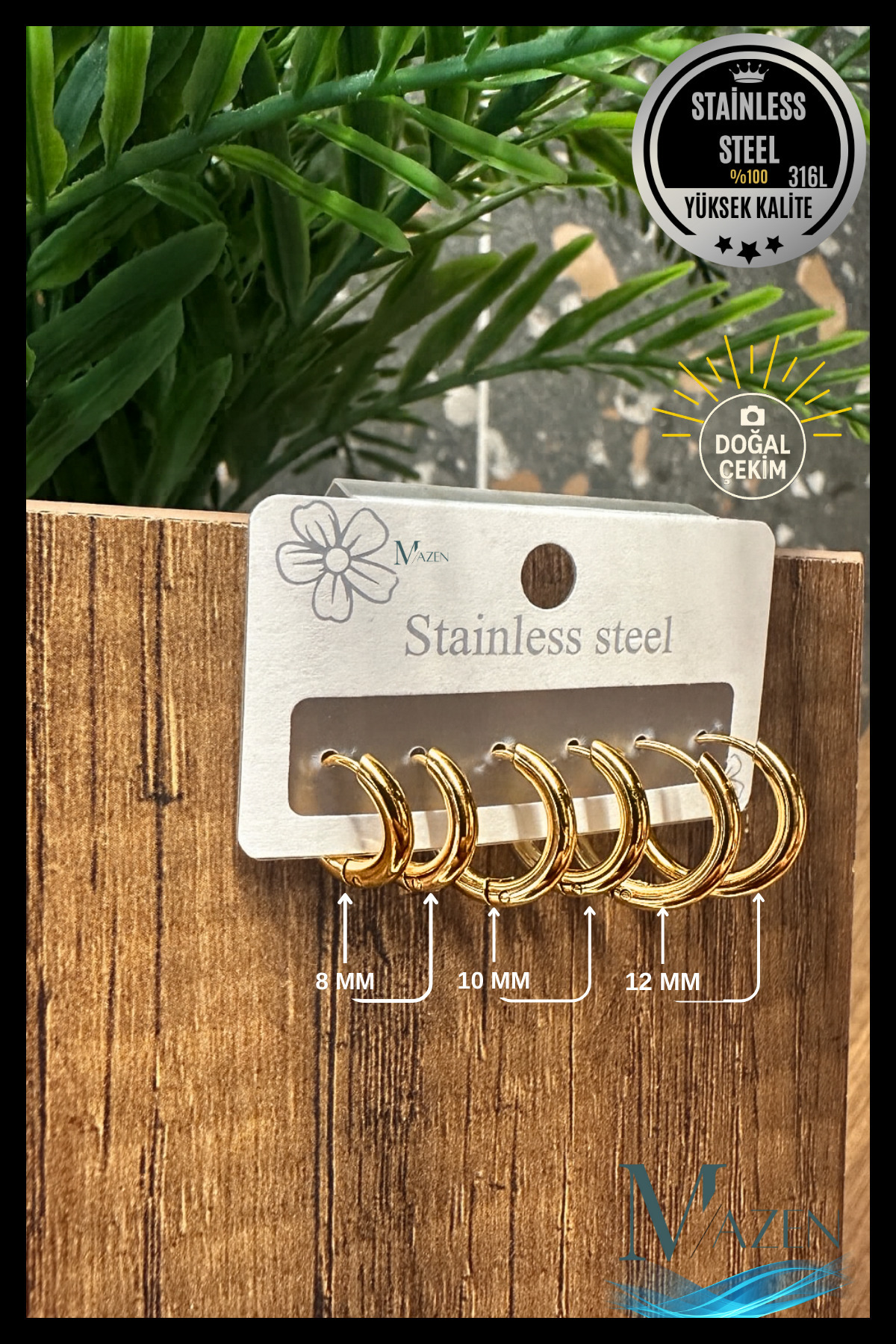 316L Çelik Set Halka Küpe | Gold Renk | 6 Adet 3 Farklı Boy | Kalın Bar Model 316L Çelik Set Halka Küpe | Gold Renk | 6 Adet 3 Farklı Boy | Kalın Bar Model 2600STHLK Set