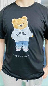Kadın Oversize Teddy Bear Baskılı Bol Siyah Tişört Kadın Oversize Teddy Bear Baskılı Bol Siyah Tişört DKSB0100 2XL