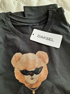 Siyah Renk Oversize Teddy Bear Baskılı Kadın Tişört Siyah Renk Oversize Teddy Bear Baskılı Kadın Tişört DKSB0108 2XL