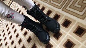 Siyah Kadın PU Deri Bot Cüzdanlı Kışlık Kalın Tabanlı Fermuarlı Bağcıklı Ortaboy 5 cm Topuk Günlük A Siyah Kadın PU Deri Bot Cüzdanlı Kışlık Kalın Tabanlı Fermuarlı Bağcıklı Ortaboy 5 cm Topuk Günlük A 121533 40