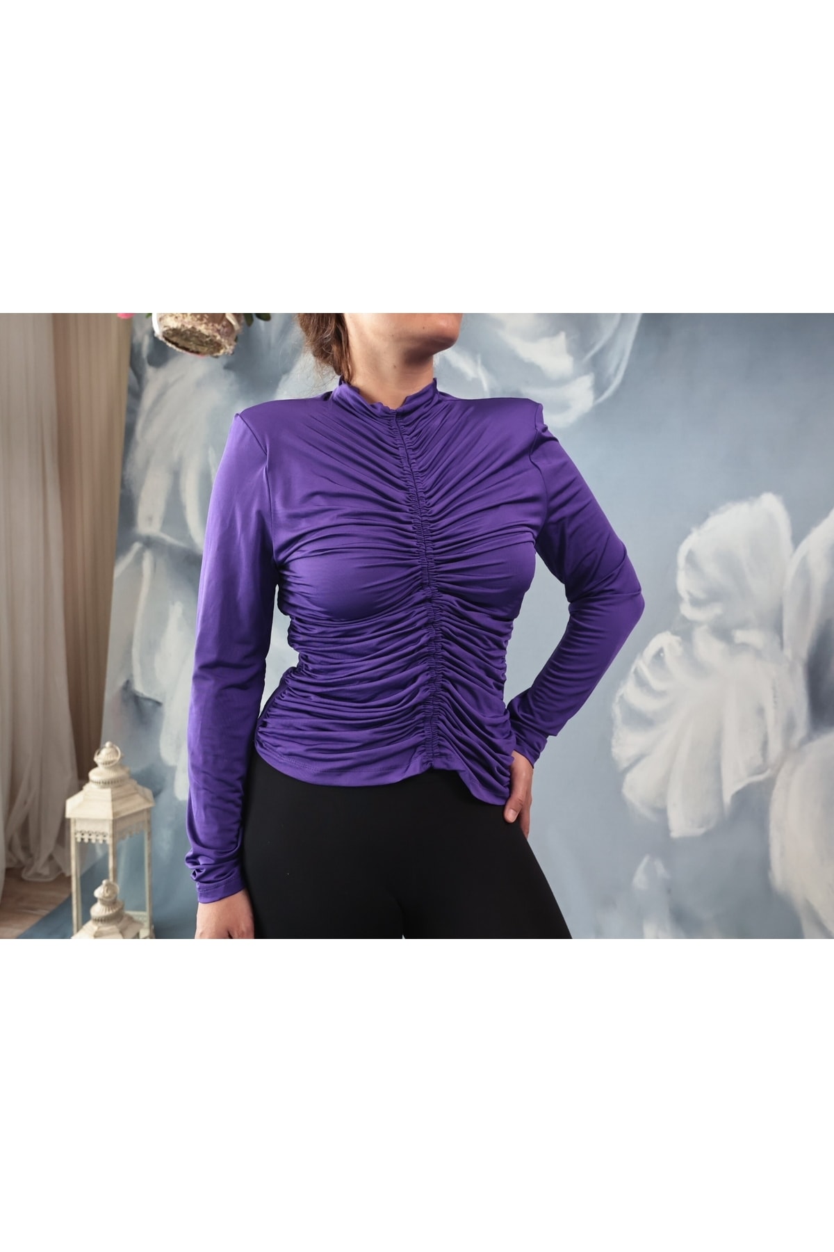 Mor Yarım Balıkçı Omuz ve Bel Drapeli Kadın Bluz Crop Mor Yarım Balıkçı Omuz ve Bel Drapeli Kadın Bluz Crop 15753 L