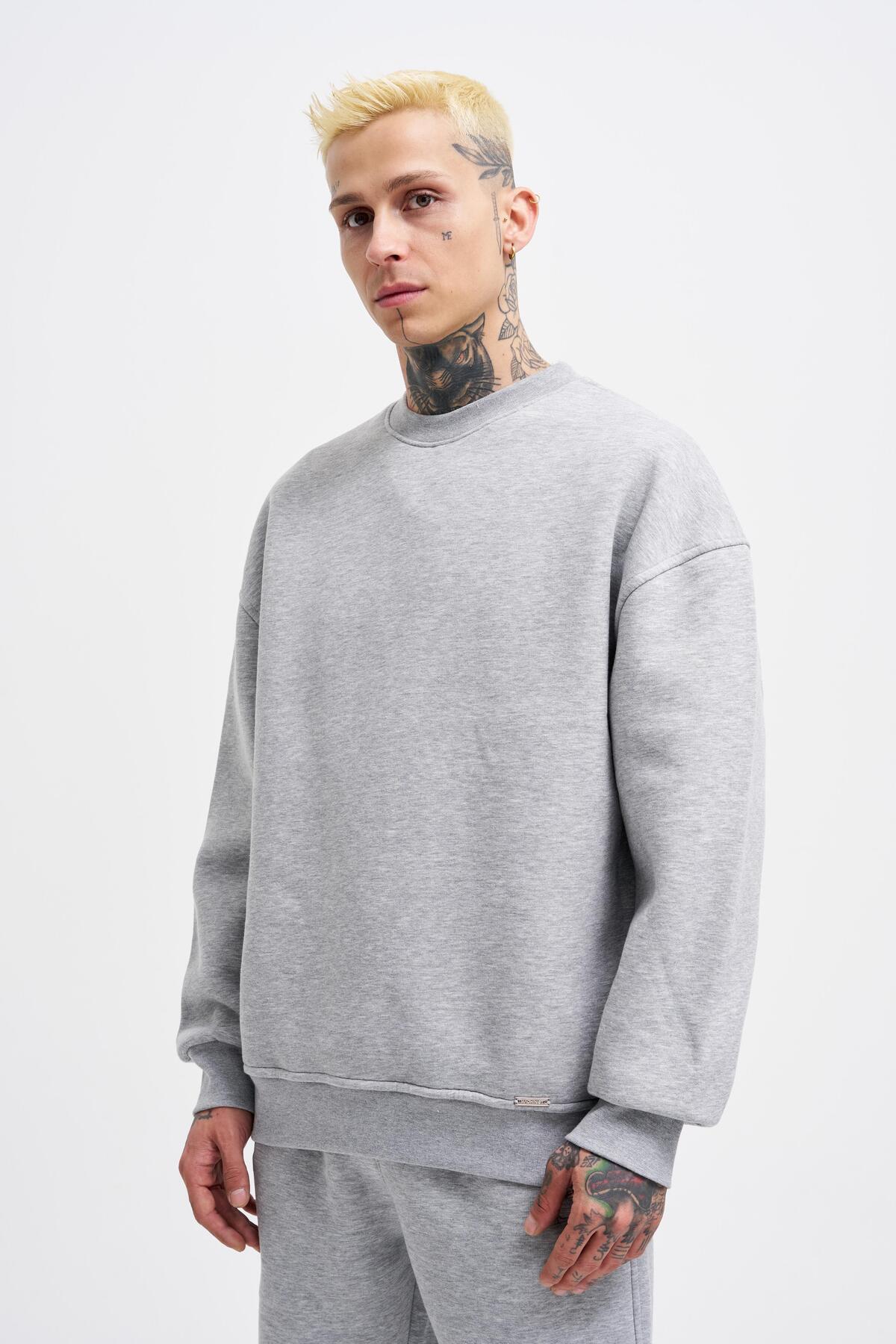 Erkek Basic Bisiklet Yaka Oversize Gri Sweatshirt Erkek Basic Bisiklet Yaka Oversize Gri Sweatshirt M3367 XL