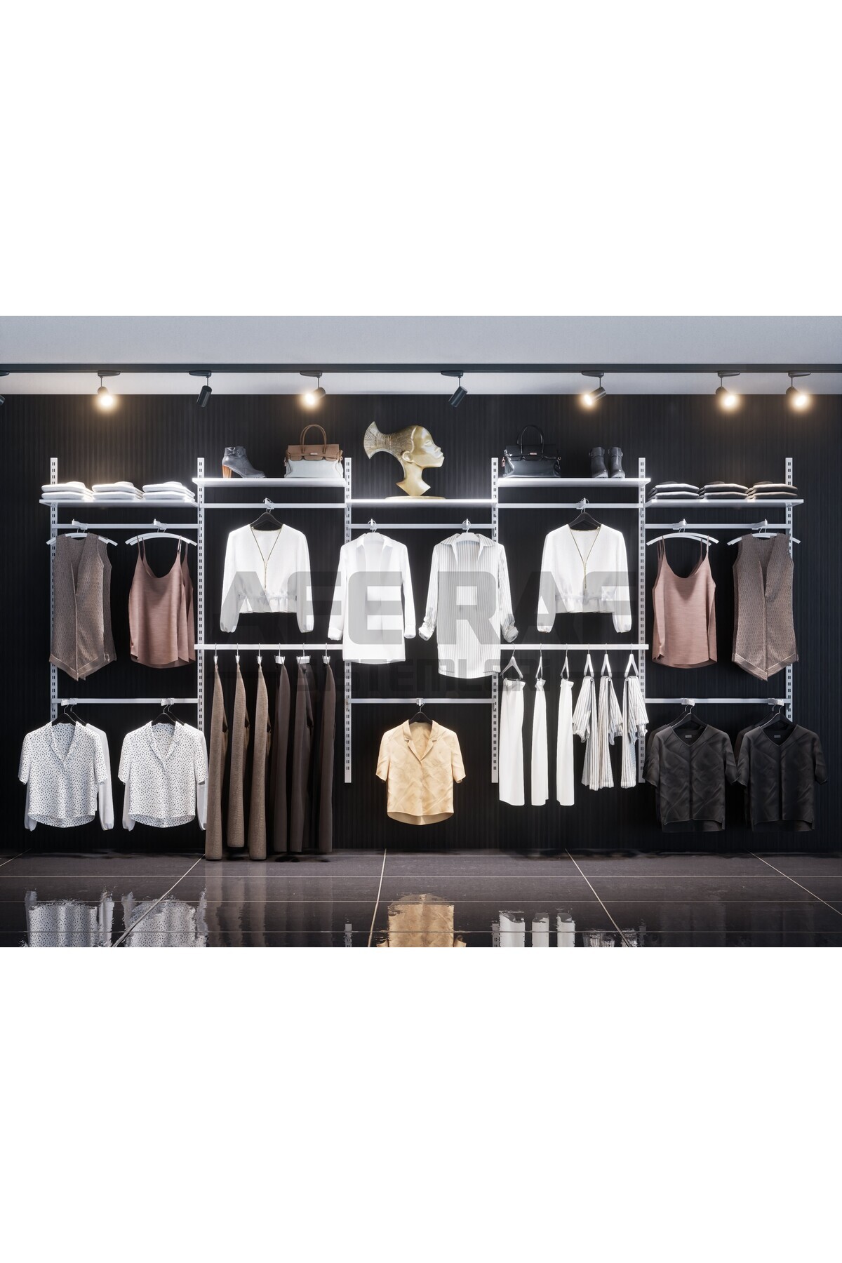Mağaza Raf Sistemi, Askılık Sistemi, Butik Rafı, Mağaza Stand, Giyinme Odası-455*200 Mağaza Raf Sistemi, Askılık Sistemi, Butik Rafı, Mağaza Stand, Giyinme Odası-455*200 AFEYENİ 5Lİ-455*200* تک سایز