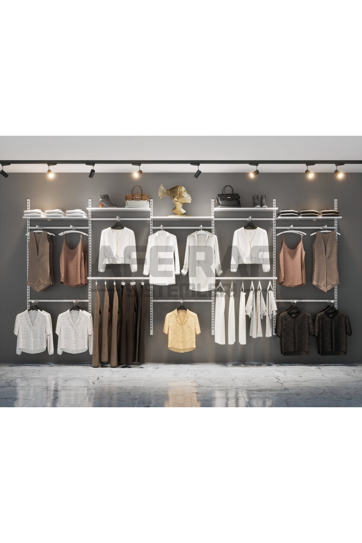 Mağaza Raf Sistemi, Askılık Sistemi, Butik Rafı, Mağaza Stand, Giyinme Odası-455*200 Mağaza Raf Sistemi, Askılık Sistemi, Butik Rafı, Mağaza Stand, Giyinme Odası-455*200 AFEYENİ 5Lİ-455*200* تک سایز