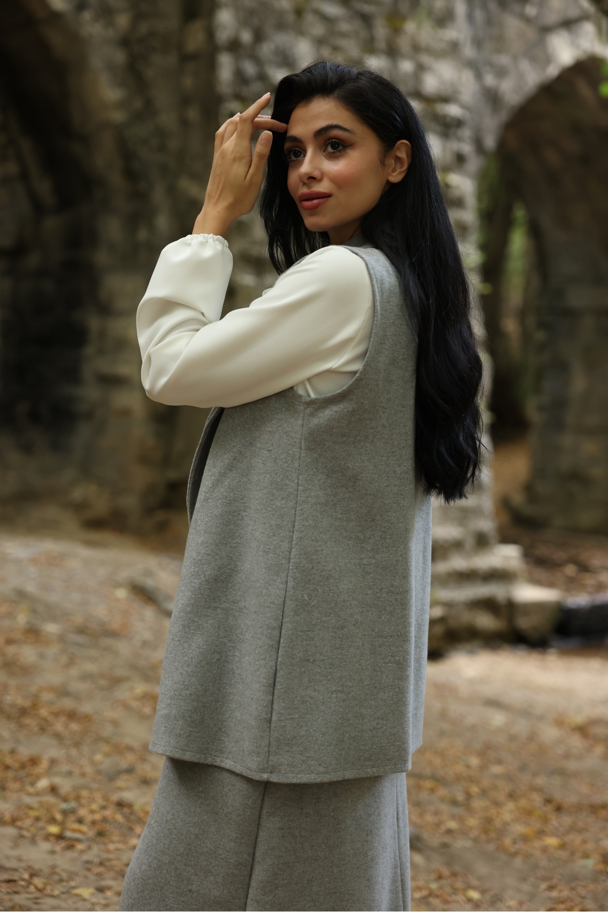Gri Uzun Kaşe Yelek-etek Takım (YELEK-ETEK) Gri Uzun Kaşe Yelek-etek Takım (YELEK-ETEK) KCGM11562 48-50