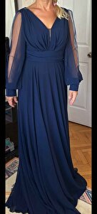 Ön Arka V Yaka Önü Drapeli Kolları Tül Astarlı Geniş Beden Aralıklı Uzun Şifon Elbise Ön Arka V Yaka Önü Drapeli Kolları Tül Astarlı Geniş Beden Aralıklı Uzun Şifon Elbise S-23K3800015 50