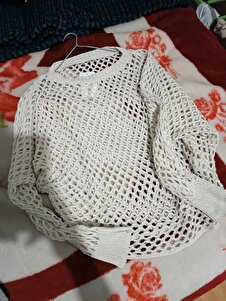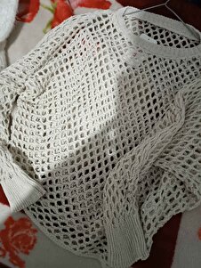 Kadın Krem Yarasa Kol Ajurlu Triko Kazak CI00091 Kadın Krem Yarasa Kol Ajurlu Triko Kazak CI00091 Standart