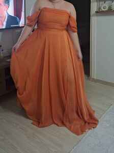 Orange Şifon Düşük Kollu Uzun Abiye Elbise Orange Şifon Düşük Kollu Uzun Abiye Elbise 58097 48