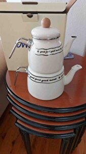 Mood Emaye Çaydanlık Takımı Ahşap Tepeli Mood Emaye Çaydanlık Takımı Ahşap Tepeli Krem تک سایز