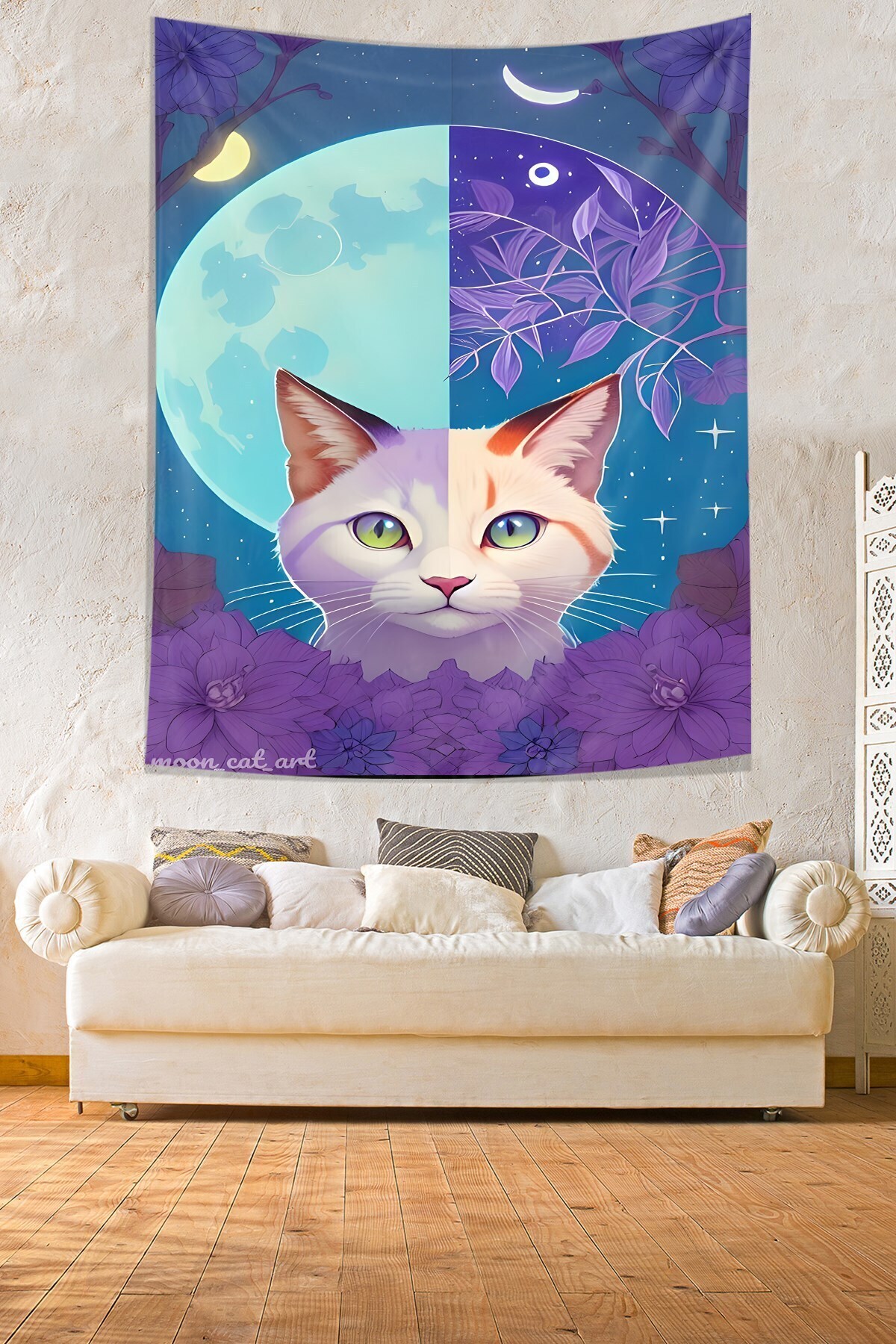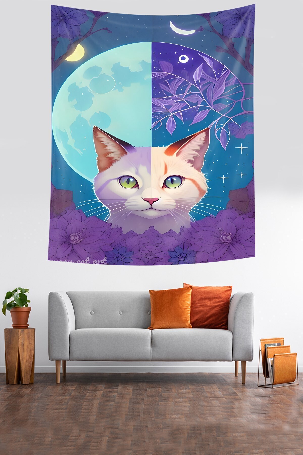 Gece Ve Gündüzde Kedi Leke Tutmaz Kumaş Duvar Örtüsü Duvar Halısı Tapestry Gece Ve Gündüzde Kedi Leke Tutmaz Kumaş Duvar Örtüsü Duvar Halısı Tapestry PNTRS16 140 x 230