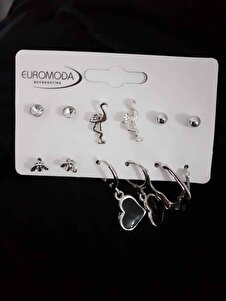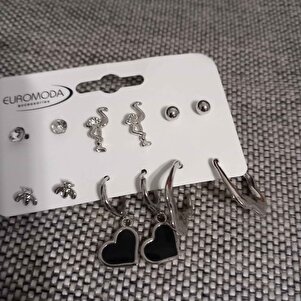 Siyah Kalp , Flamingo ve Uğur Böceği Figürlü Gümüş Renkli Halka Tektaş ve Top Küpeli 6lı Küpe Set Siyah Kalp , Flamingo ve Uğur Böceği Figürlü Gümüş Renkli Halka Tektaş ve Top Küpeli 6lı Küpe Set KP00,00,X722 تک سایز