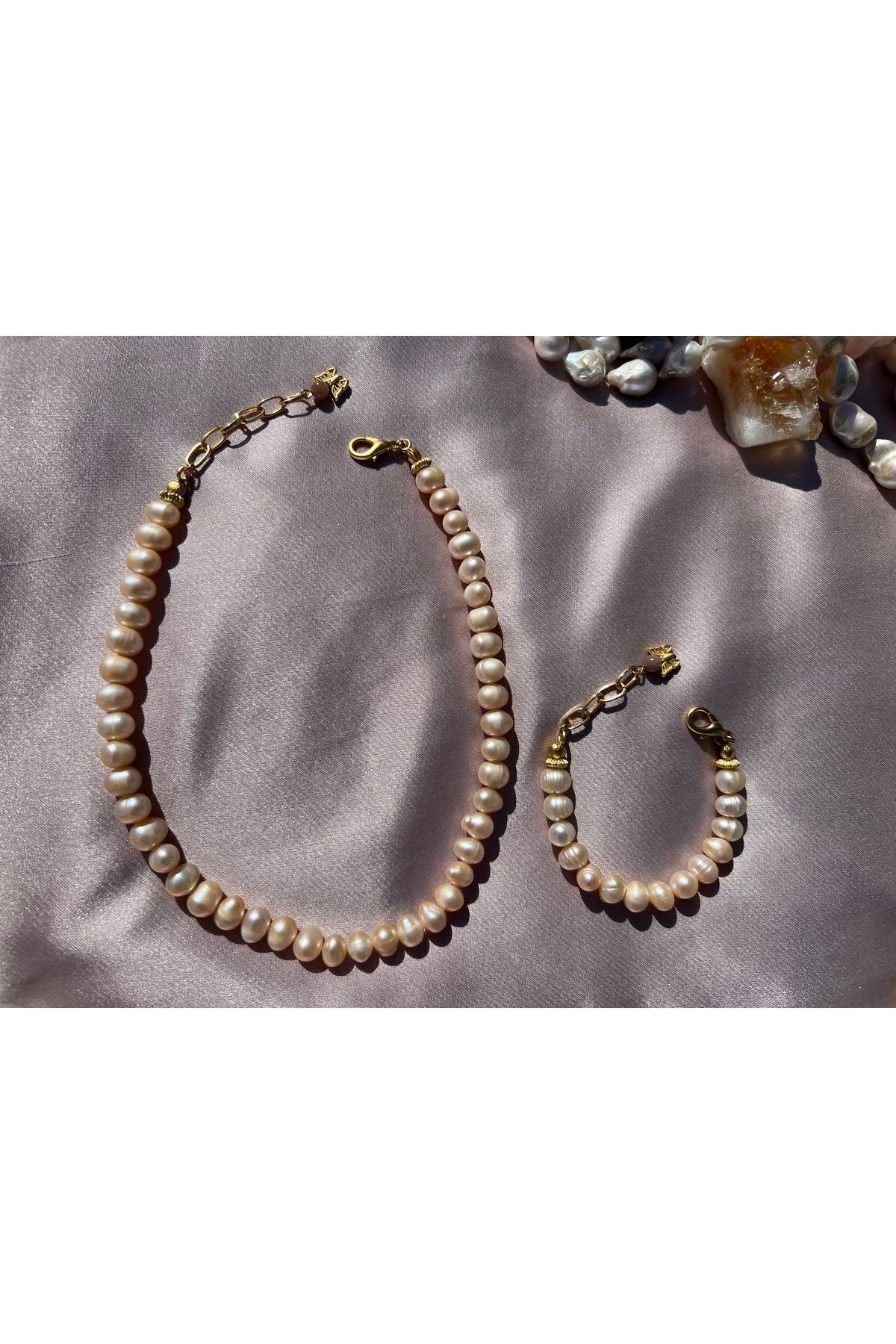 Gerçek Inci Doğal Kültür Incisi Kolye Bileklik Set 7-8 Mm Gerçek Inci Doğal Kültür Incisi Kolye Bileklik Set 7-8 Mm 003inciset تک سایز