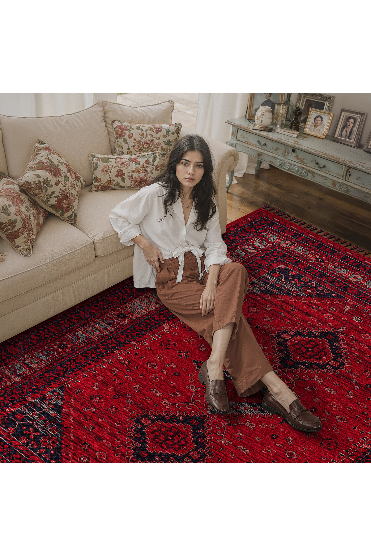 Afgan / Yağcıbedir Desenli Hav Toz Vermez Yıkanabilir Kaymaz İnce Dokuma Halı Afgan / Yağcıbedir Desenli Hav Toz Vermez Yıkanabilir Kaymaz İnce Dokuma Halı BHR 03 Red 160 x 230