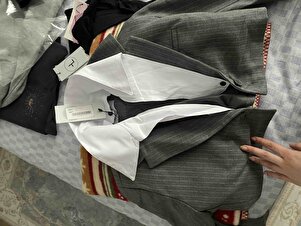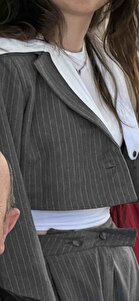 Çıkarılabilir Gömlek Yakası Detaylı Çizgili Crop Kira Blazer Ceket Gri Çıkarılabilir Gömlek Yakası Detaylı Çizgili Crop Kira Blazer Ceket Gri HLSS23-00116 L