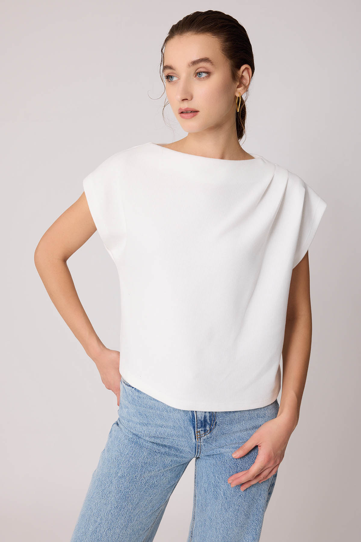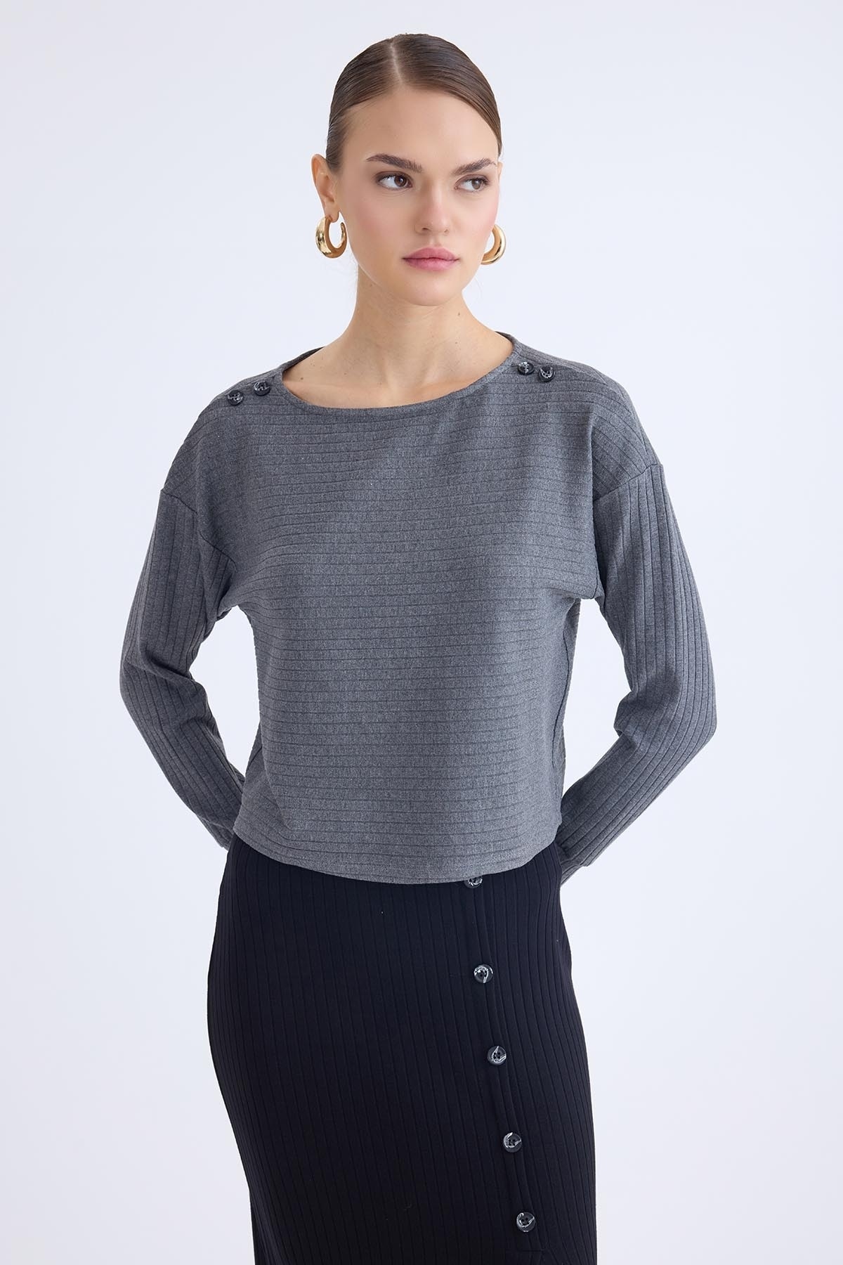 Omuz Kısmı Büzgülü Kısa Kol Triko Bluz Omuz Kısmı Büzgülü Kısa Kol Triko Bluz 23-3831 XL