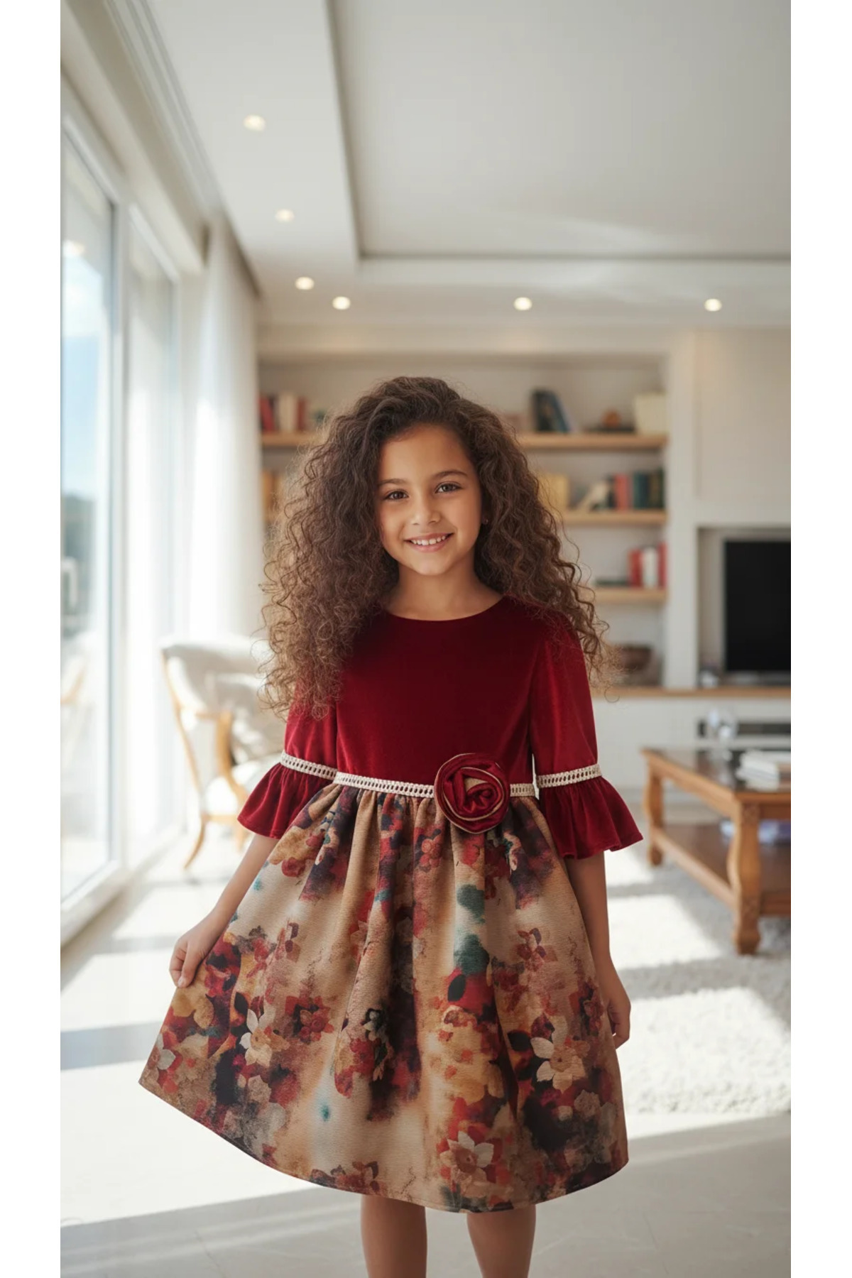 Siyah Beyaz Desenli Kız Çocuk Elbisesi Siyah Beyaz Desenli Kız Çocuk Elbisesi ERW3456GFG 7 Yaş