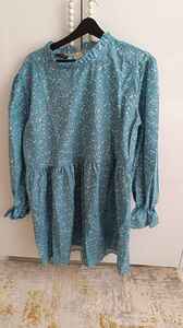 Mavi Çıtır Poplin Fırfır Yakalı Tunik Mavi Çıtır Poplin Fırfır Yakalı Tunik KCGM11628 48-50