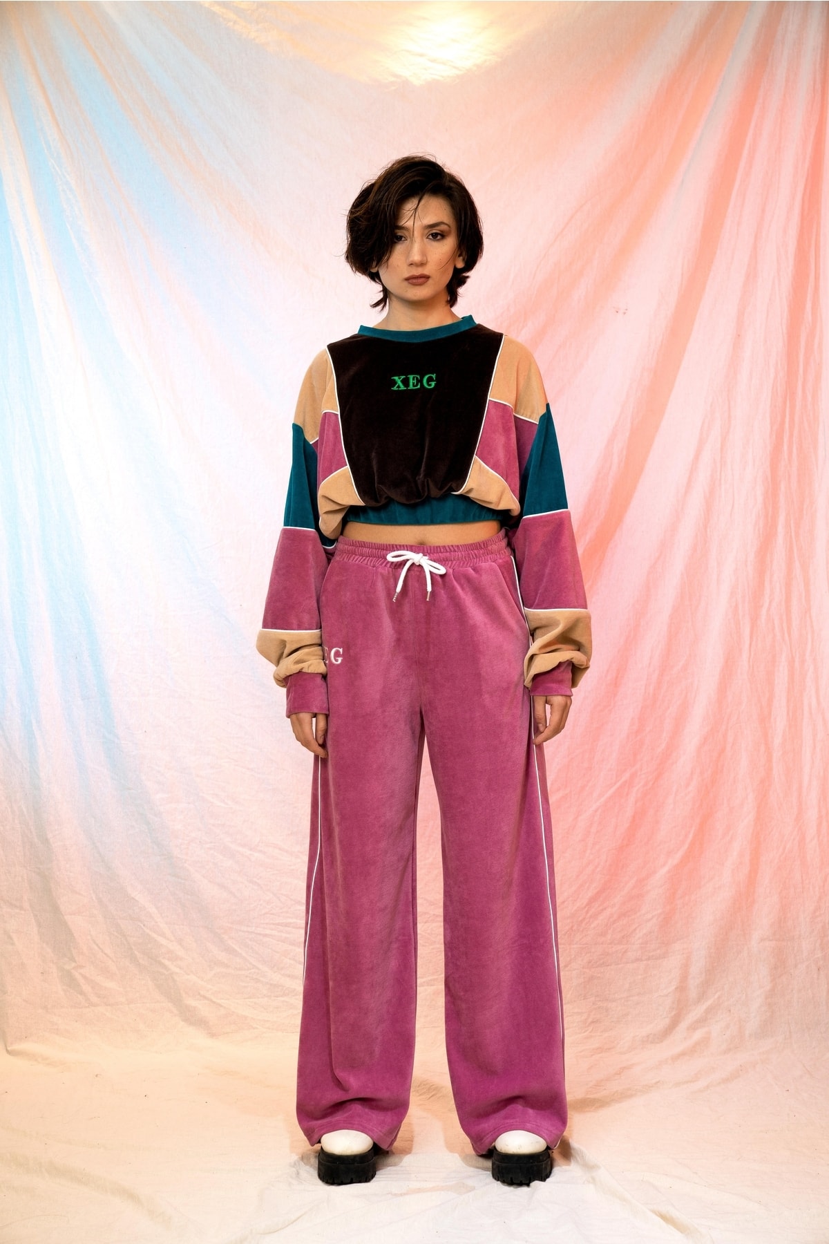 Bol Paça Fransız Kadife Pantolon Pembe Bol Paça Fransız Kadife Pantolon Pembe SWN0239 42