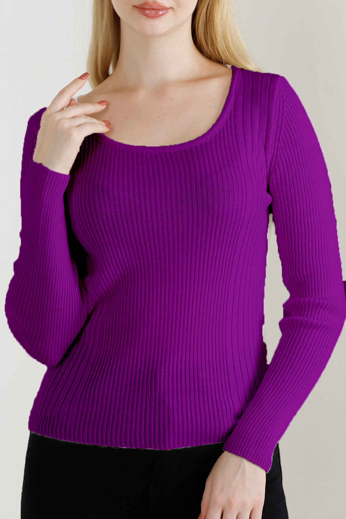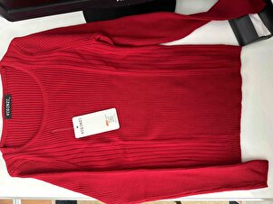 Kadın Kırmızı Kare Yaka Triko Kazak Kadın Kırmızı Kare Yaka Triko Kazak VGNZ0143 M