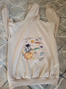 Galaxy Özel Baskılı Oversize Kapüşonlu Sweatshirt Bej Galaxy Özel Baskılı Oversize Kapüşonlu Sweatshirt Bej GALAXY-YASOLİN- XL