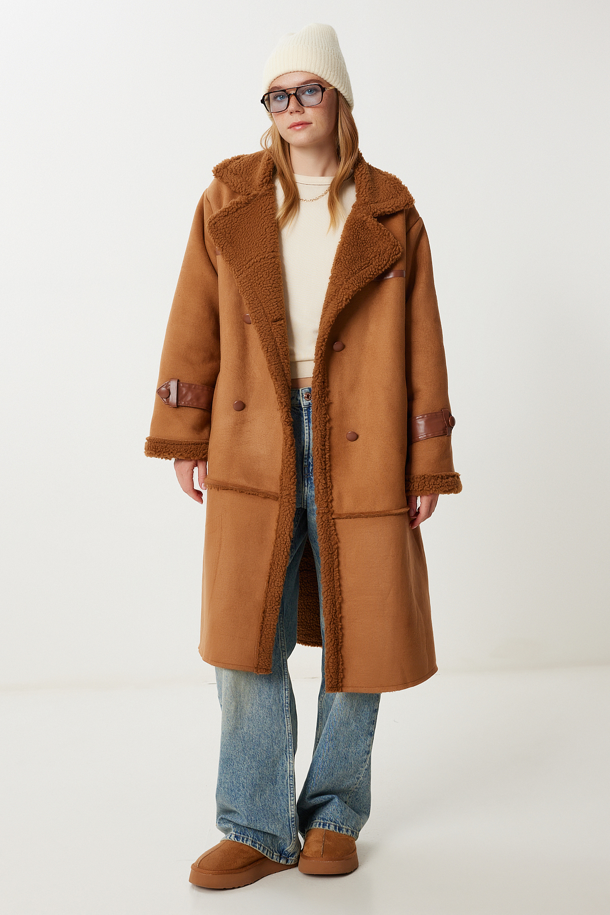 Kruvaze Fermuarlı İçi Kürklü Süet Mont TABA 6514 Kruvaze Fermuarlı İçi Kürklü Süet Mont TABA 6514 L