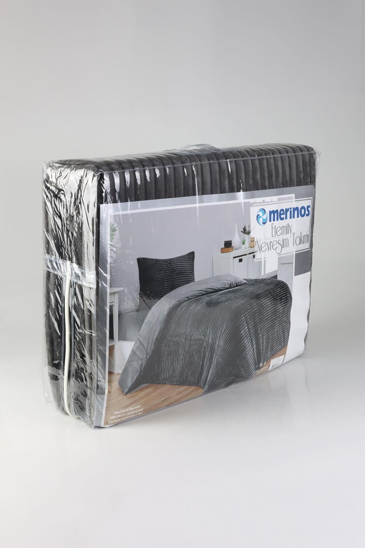 Fitilli Peluş Çift Kişilik Nevresim Takımı - Antrasit Fitilli Peluş Çift Kişilik Nevresim Takımı - Antrasit 003059 تک سایز