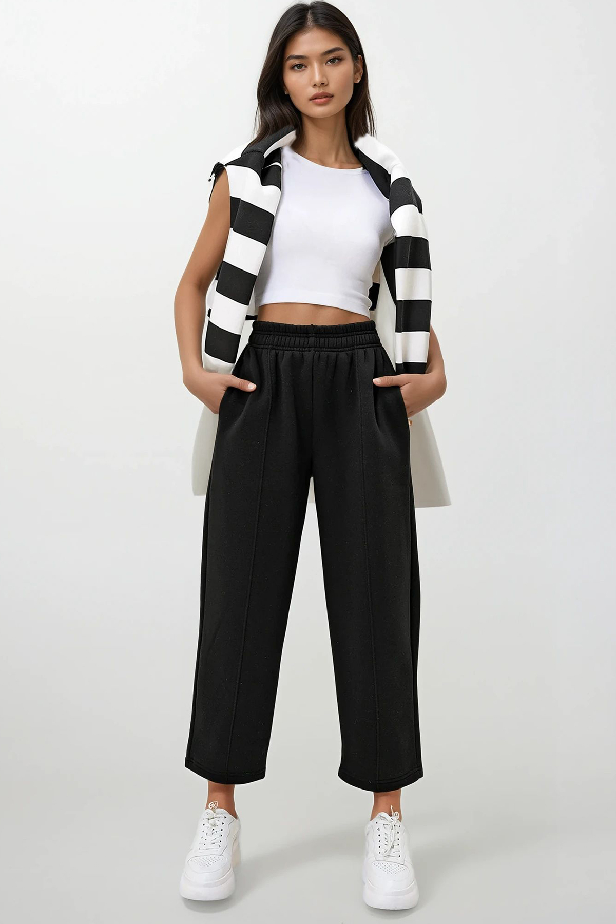 Kadın Gri Çift Cepli Fermuarlı Çizgili Pileli Pantolon ALC-X11040 Kadın Gri Çift Cepli Fermuarlı Çizgili Pileli Pantolon ALC-X11040 L