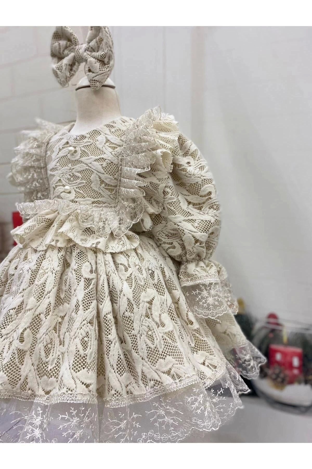 Krem Kadifeli Fransız Dantel(4 Parcalı) Kız Çocuk Elbisesi Krem Kadifeli Fransız Dantel(4 Parcalı) Kız Çocuk Elbisesi ERW345AWQRT 10 Yaş