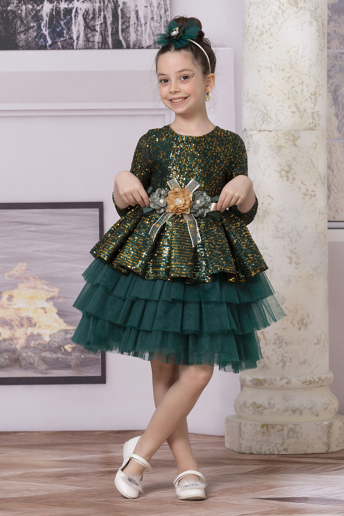 KIZ ÇOCUK TÜLLÜ PAYETLİ ELBİSE KIZ ÇOCUK TÜLLÜ PAYETLİ ELBİSE 2309 10 Yaş