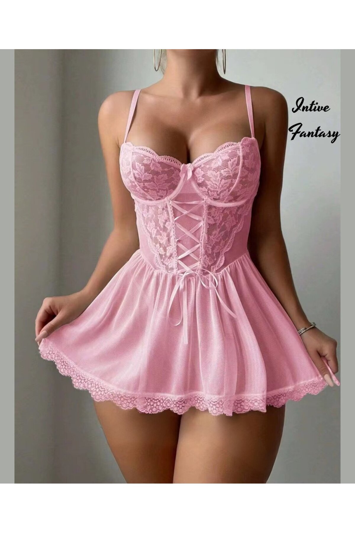 TOZ PEMBE MİNİ ŞIK FANTEZİ KOSTÜM GECELİK TOZ PEMBE MİNİ ŞIK FANTEZİ KOSTÜM GECELİK LOV6807LOV L/XL