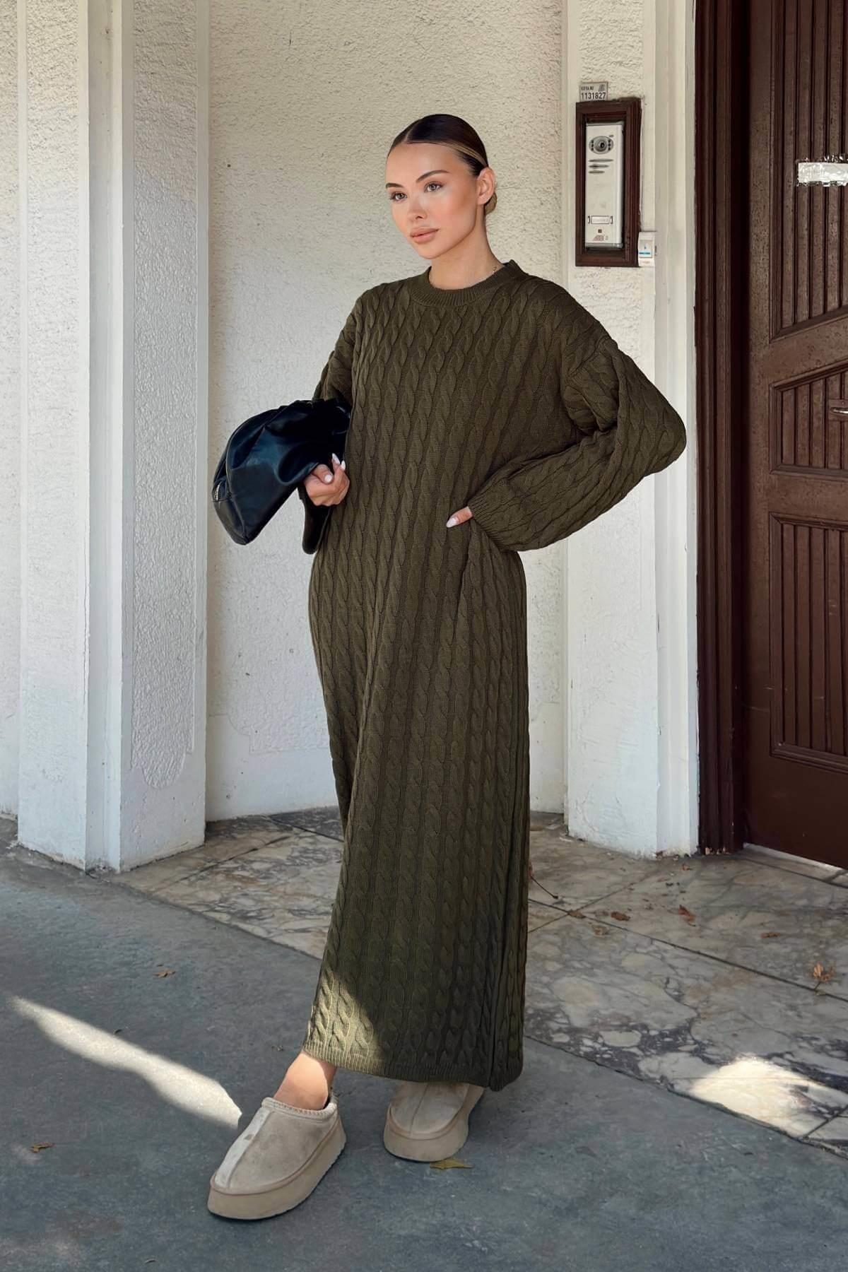 Antrasit Bisiklet Yaka Saç Örgülü Triko Elbise 101-01382 Antrasit Bisiklet Yaka Saç Örgülü Triko Elbise 101-01382 Standart
