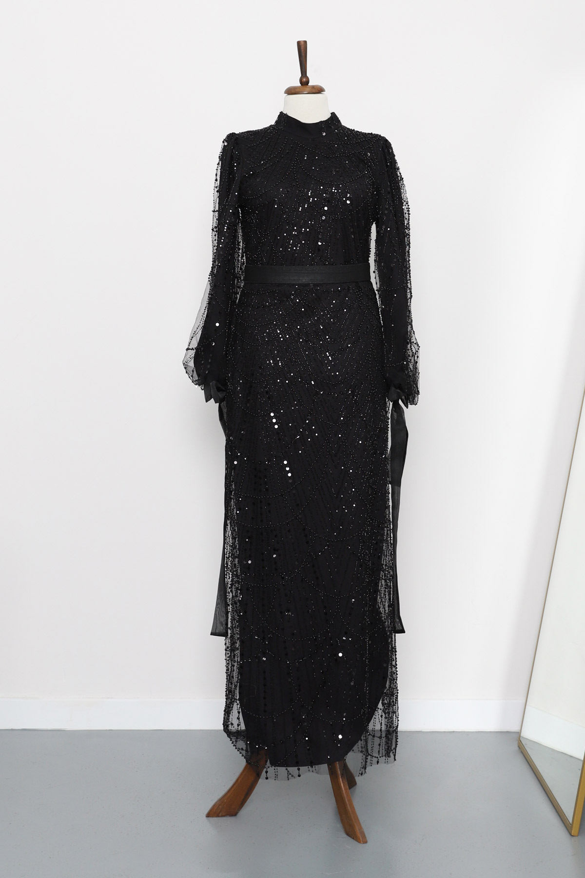 Organze Boncuklu Dantel İşlemeli Güneş Abiye Siyah Organze Boncuklu Dantel İşlemeli Güneş Abiye Siyah ZNNGNS2349 44