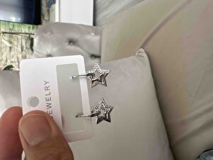 İki Yıldız Charmlı Halka Küpe İki Yıldız Charmlı Halka Küpe AFGRSX19 تک سایز