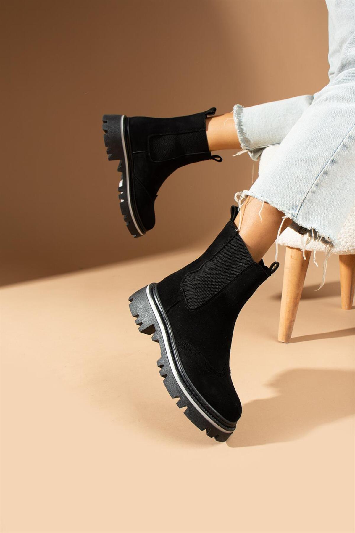 Maureen Kadın Bot&Bootie Ön Desenli Yandan Lastikli Siyah Süet Maureen Kadın Bot&Bootie Ön Desenli Yandan Lastikli Siyah Süet 40