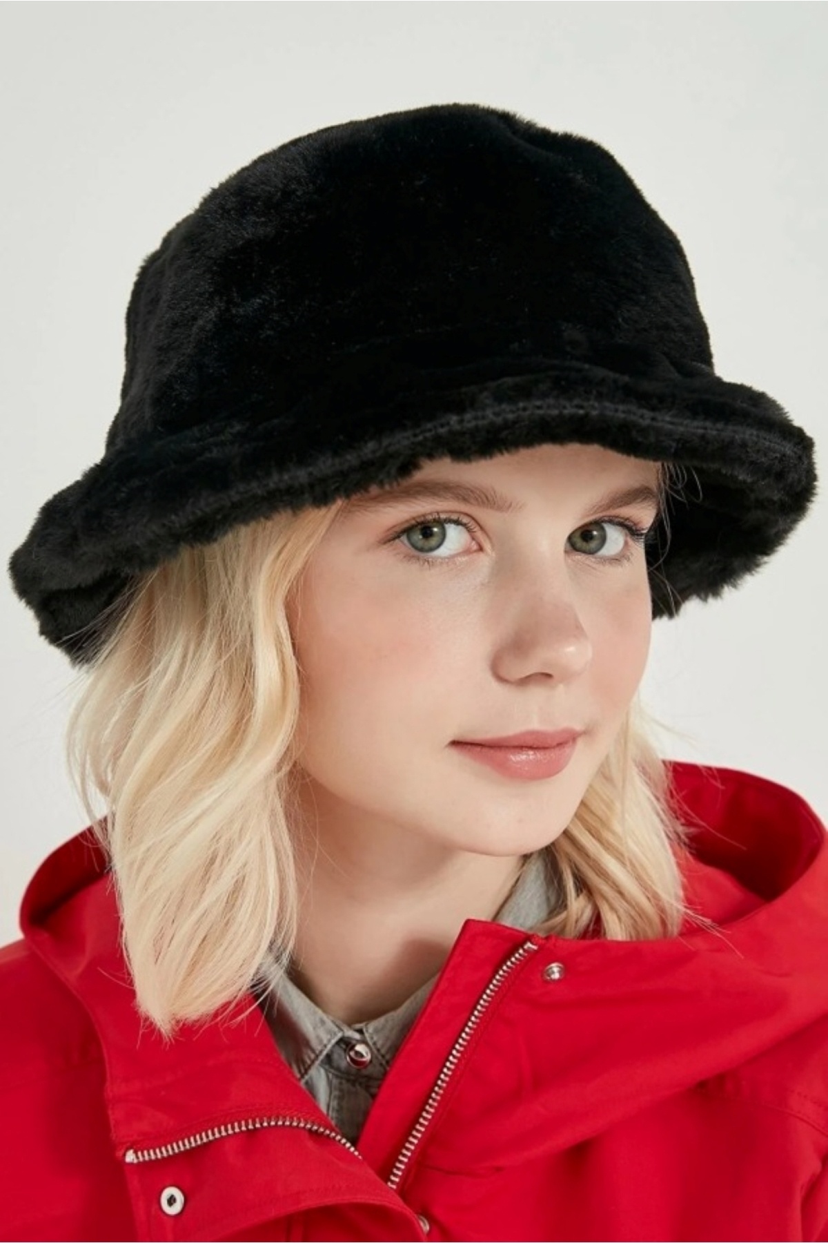 Kadın Siyah Yumuşak Dokulu Peluş Kova Şapka Bucket Kadın Siyah Yumuşak Dokulu Peluş Kova Şapka Bucket peluş şapka تک سایز