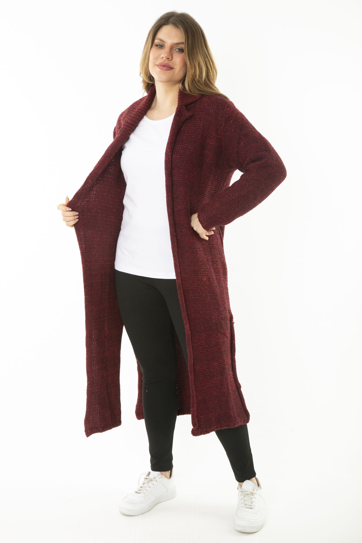 Kadın Büyük Beden Bordo Yırtmaçlı Kalın Triko Uzun Hırka 65N37131 Kadın Büyük Beden Bordo Yırtmaçlı Kalın Triko Uzun Hırka 65N37131 44-46
