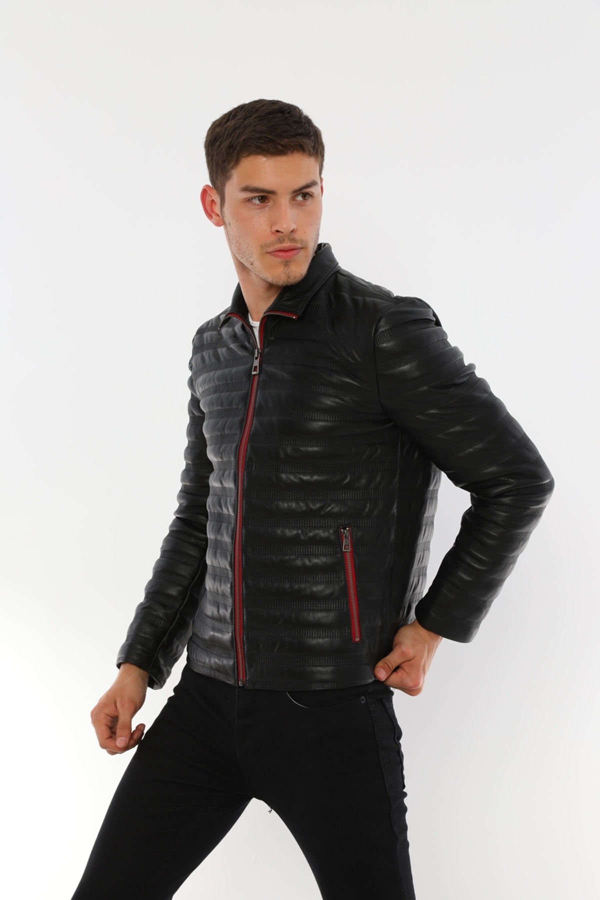 Erkek Dik Yaka Hakiki Siyah Deri Ceket - UZ01 Erkek Dik Yaka Hakiki Siyah Deri Ceket - UZ01 UZ-01 3XL