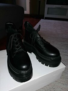 Jayle Siyah Cilt Yüksek Topuk Detaylı Bağcıklı Kadın Bot Jayle Siyah Cilt Yüksek Topuk Detaylı Bağcıklı Kadın Bot HYL56013 40